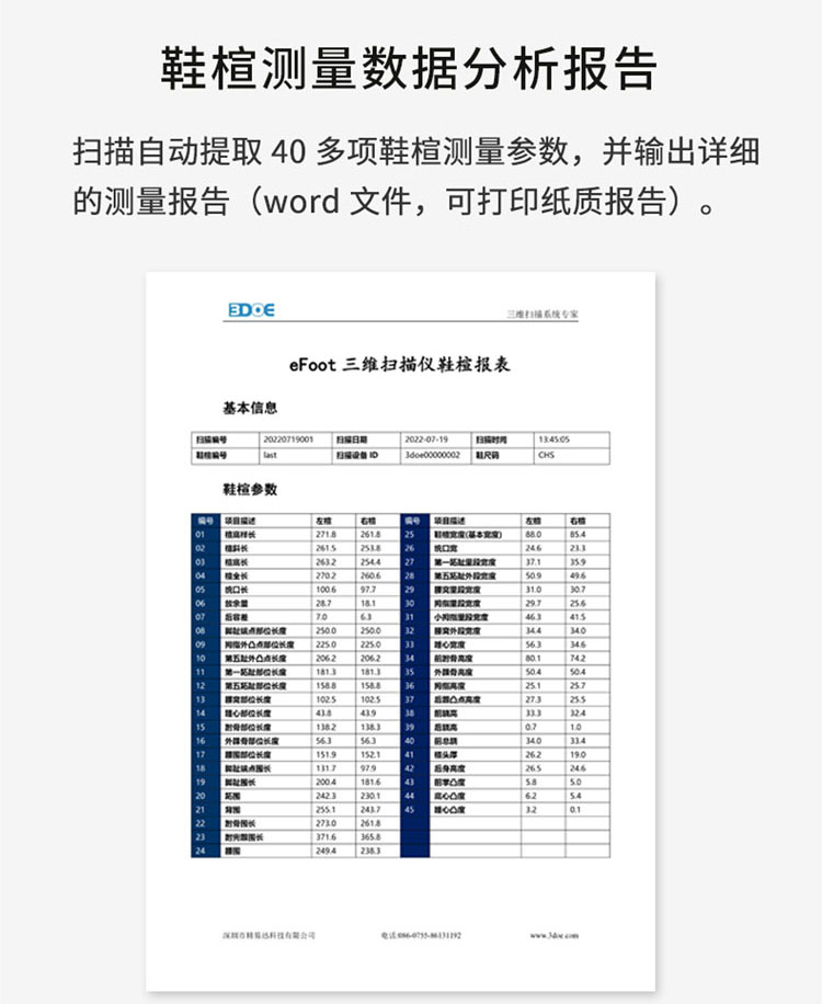 5、采集到的数据有60多组,同时能够对足弓、内外翻等评测,适合门店、诊所等多种报表格式可定制。