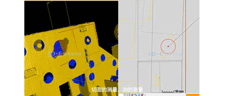 6.切面测量,2D的测量,支持在任意X,Y,Z方向上去切面转换为一个测量平面,可以直接在空间和平面上测量角度,长度,直径等
