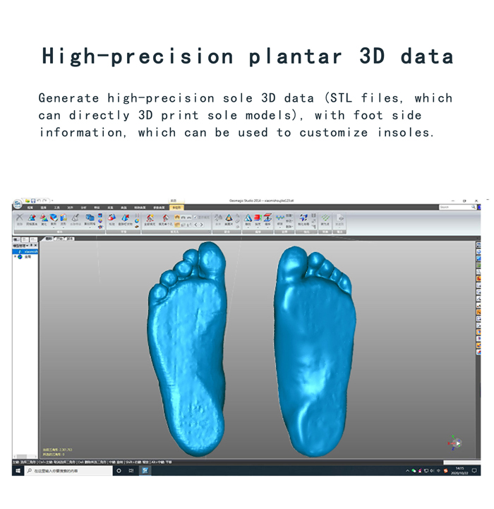 通过激光扫描原理,获取足部三维形态及关键尺寸,采集结果精准,误差可控制在0.5mm内。...