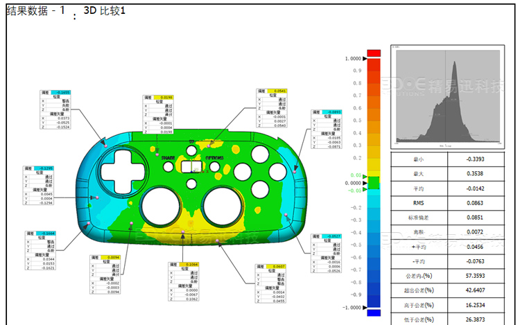 4、以下是游戏手柄的三维检测报告以及检测参数
